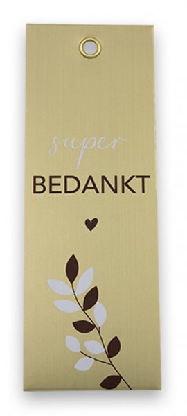 Dankzij de slanke vorm kan het label eenvoudig met lint, koord of een clip aan een cadeau worden bevestigd.