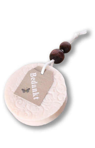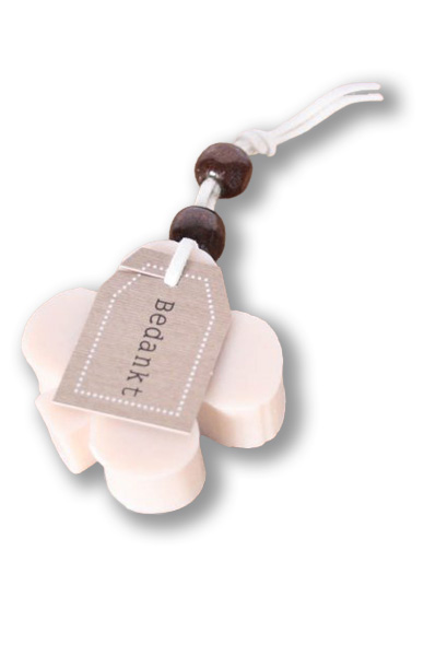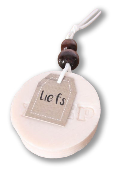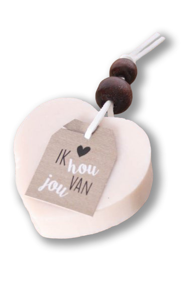Deze set bestaat dus uit 4 zeepjes waar hetzelfde tekstkaartje aan bevestigd is.