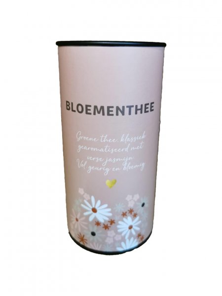 BLOEMENTHEE: groene thee, klassiek gearomatiseerd met verse jasmijn. Vol, geurig en bloemig. 50 gram biologische groene jasmijnthee.
