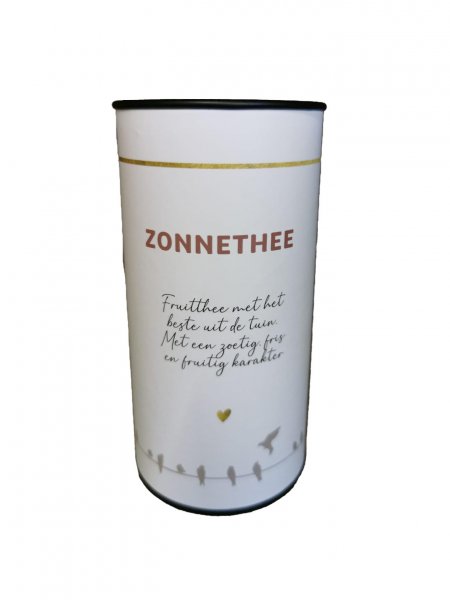 ZONNETHEE: fruitthee met het beste uit de tuin. Met een zoetig, fris en fruitig karakter. 50 gram appel, hibiscus, sinaasappelstukjes, bramen, frambozen.
