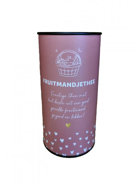 FRUITMANDJETHEE: fruitige thee met het beste uit een goed gevulde fruitmand. Gezond en lekker! 50 gram appel, citroenschil, zwarte bessenblad, hibiscus, duindoornbes, cranberry, aroniabes, aroma.