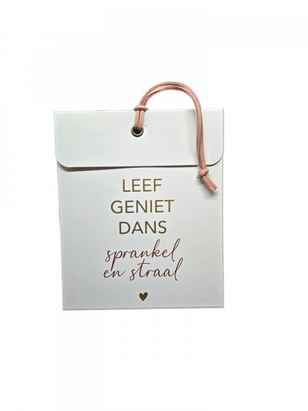 Inclusief: suède koordje en losse witte envelop.
